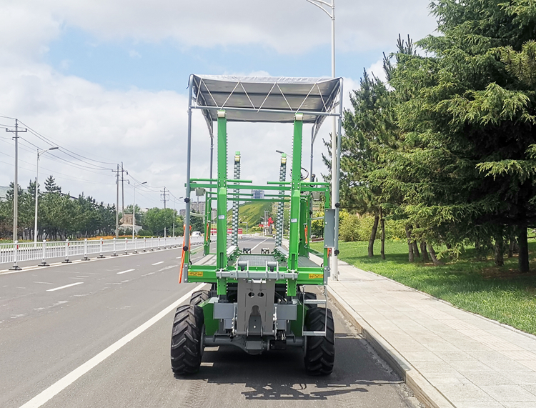4GP-1200DA diesel full hydraulic drive picking operation platform is a diesel full hydraulic full size four wheel four drive picking operation platform developed by Zoomye Company for medium and large-scale park users. The operating surface is 3m x 3m, which can accommodate 6-8 operators+2 500 kg standard fruit baskets at the same time. It is a high-end product of Zoomye 1200 series platform. It has excellent off-road ability, strong power performance, excellent operation comfort, high efficiency, high reliability High life, high fuel economy, easy maintenance and other characteristics.